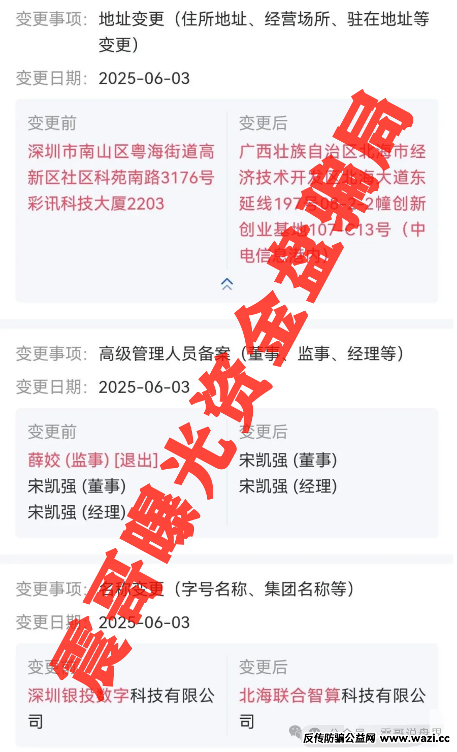 最明显的雷点是2025年6月突然迁到广西北海经济开发区。这地方专搞“集群注册”,说白了就是空壳公司大本营,多少资金盘跑路前都爱往这儿钻。