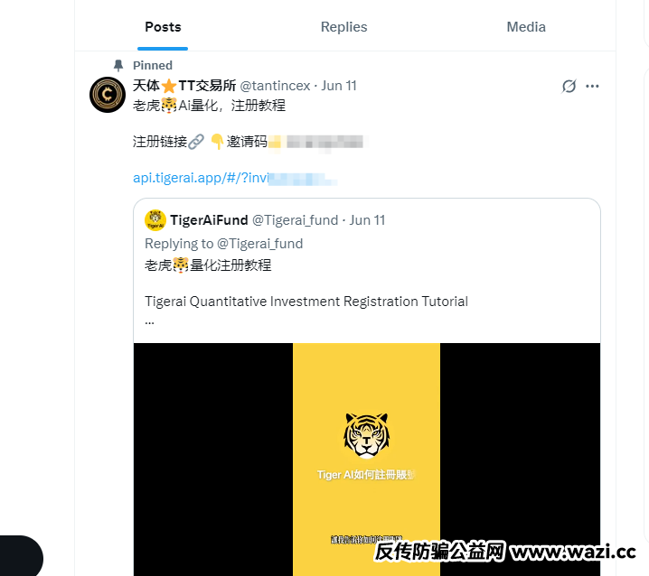 看网上有人说,打开天体交易所APP,只剩一片空白了?!这个曾宣称首日注册破千万的平台,看推特的关注量真的是少的可怜的。那现在7月初彻底关闭服务器,CTC代币价值就等于归零了。更讽刺的是,就在最近,同一个团伙推出的老虎AI已悄然上线,宣传页上赫然写着:AI量化交易,带你收复失地!。现在就问你,还敢不敢继续跟上了。
