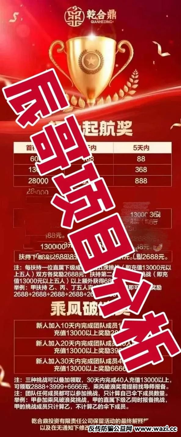 最近好多粉丝催辰哥扒这个乾合鼎(兴红资管)股票类资金盘骗局,辰哥仔细研究后发现这根本就是资金盘老司机们的新套路!跟你们说啊,这伙人去年就搞过牛投宝、明日之星那些短命盘,现在...