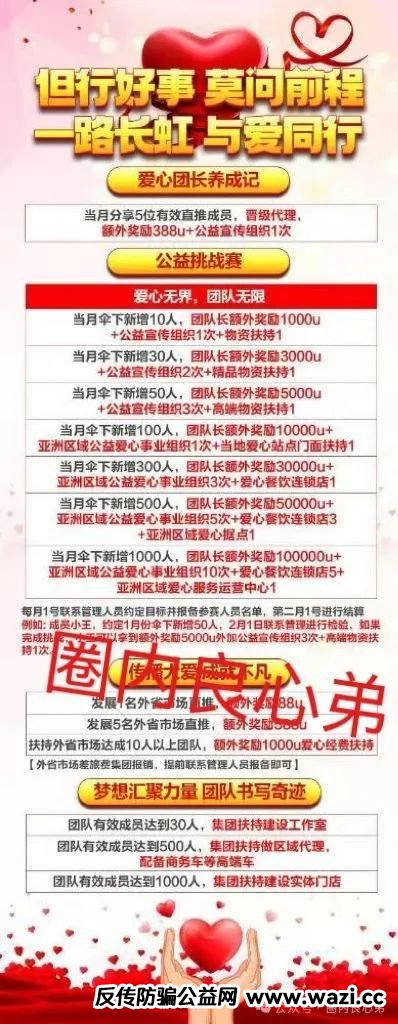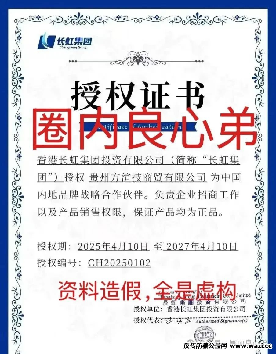 目前长虹集团投资有限公司近期较为活跃,在贵州等地进行了“爱心捐赠”活动。据“贵州特殊教育中等职业技术学校”微信公众号发布,今年3月26日,长虹集团投资有限公司到贵州特教中职校开展爱心捐赠活动,另据“黔东南人大视线 ”7月7日发布,长虹集团投资有限公司赴凯里市大风洞镇举行“爱心捐赠”活动,都是诈骗分子惯用的手段。