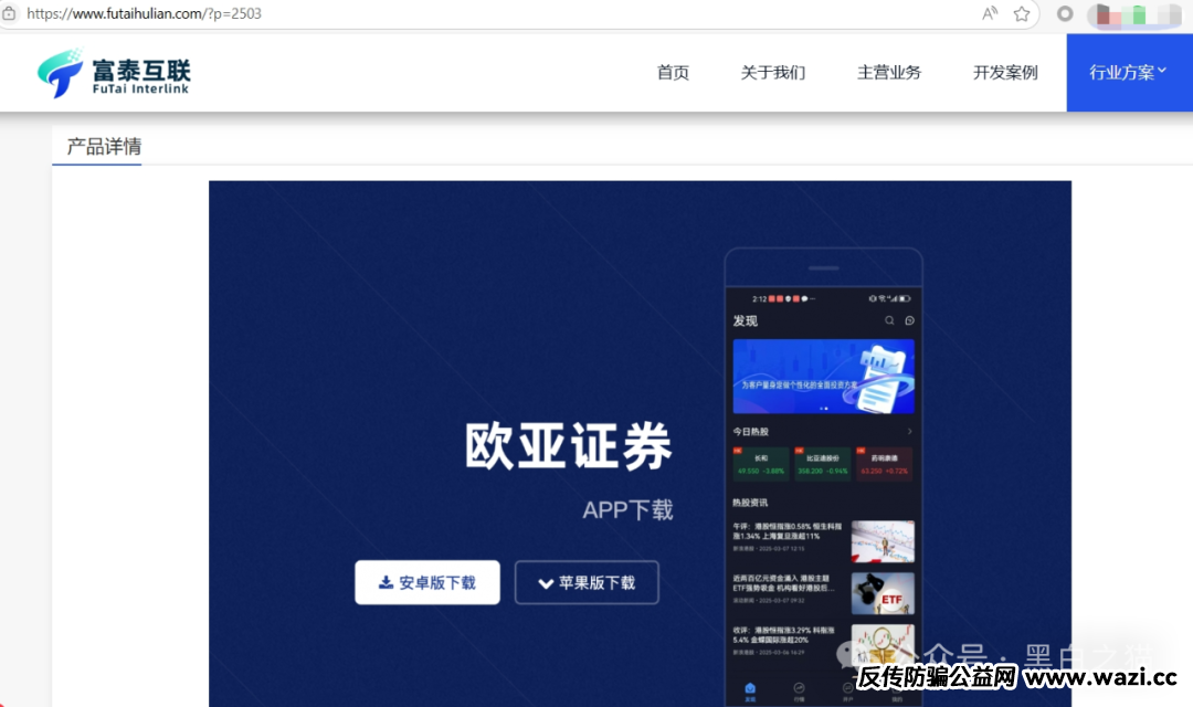 官网对“欧亚证券”项目的下载链接也是来自https://static.eurasianhk.com/