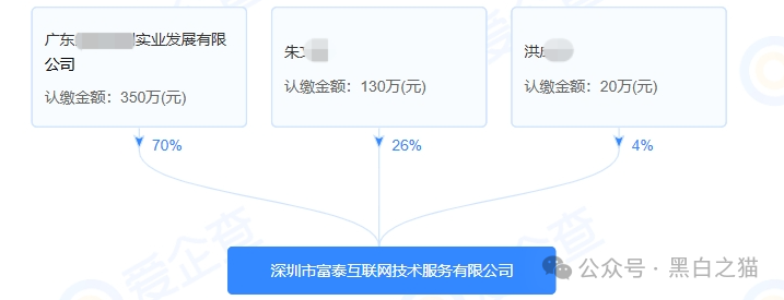 通过爱企查内容显示,表面法人洪某IT出身90后,名下现存2家关联公司,但公司大股东单位为广东某实业发展有限公司。