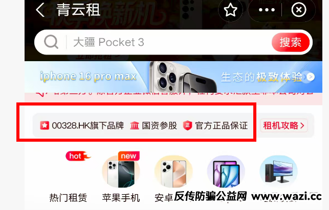 然后我在抖音搜了一下租手机,确实是有很多这类业务的租赁公司。业务模式是这样的: