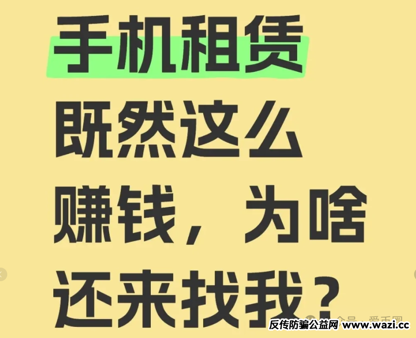 你一台手机出租,一租就一年,利润30%,还要信用分750分以上,租手机的人不会分期买吗?没脑子的还去租一个用?钱有多?