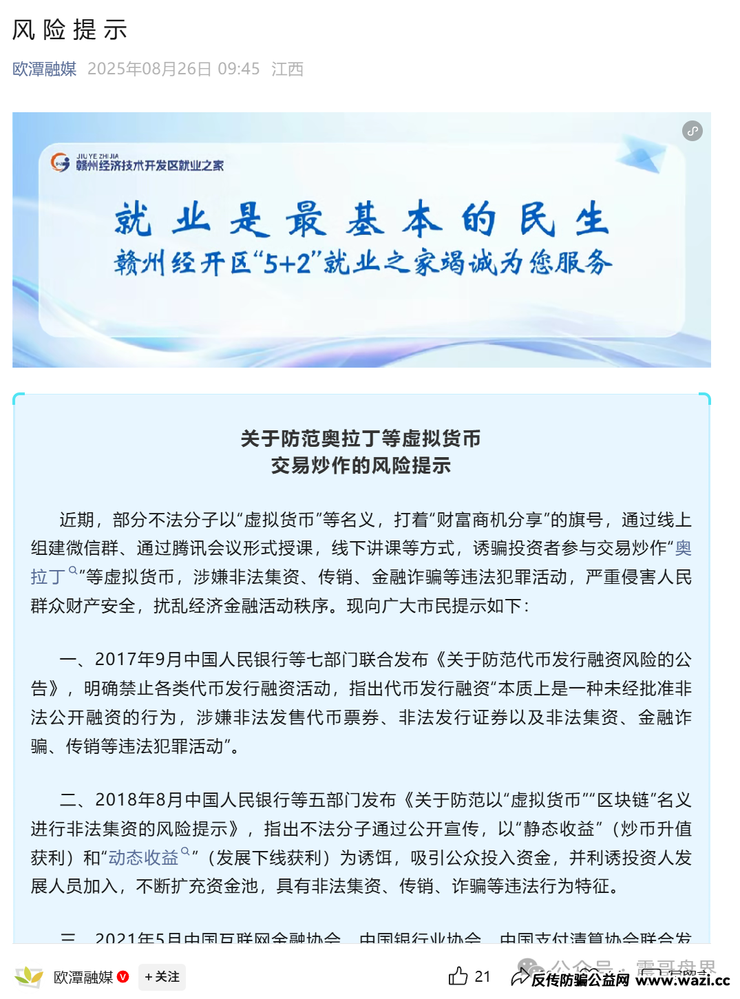 最近几个资金盘项目又出来割韭菜了,震哥给你们扒一扒,千万别上当! 1. 奥拉丁 官方都发风险提醒了,价格还在狂跌,这项目明显不对劲,赶紧撤! 2. Blackstone(奇迹盟会) 彻底凉凉,已经跑...