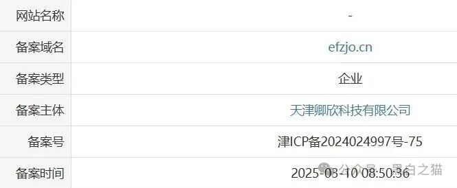 经查询涉诈APP的下载链接域名efzjo.cn来自天津卿欣科技有限公司,2024年10月15日注册,法人邓某;