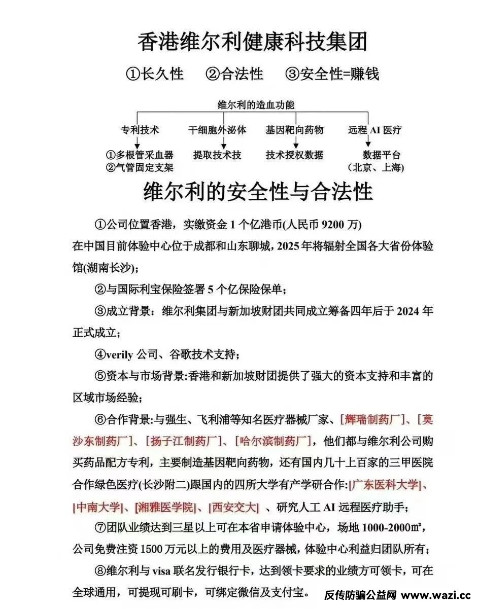 该“维尔利”的项目介绍和模式制度,在市场上很多团队长,对外宣称投资致富为口号,在高收益的前提条件下,通过短时间吸引投资者,主要是打着健康产业的幌子,虚构前沿科技,并承诺投资者在短期内获得数倍的回报,良心弟仔细深入研究和查询相关资料,这些项目大多数都是套用正规的公司作为市场的背书,目前已经有不少团队被单割。