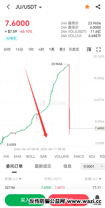 聚币平台币JU更是暴跌4倍从24u直线暴跌到6U,妥妥的杀猪