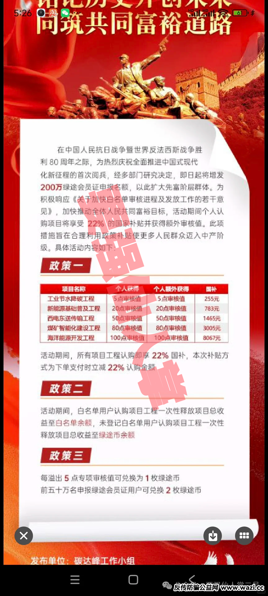 “碳达峰”“碳中和”是国家严肃的发展战略,却被“绿途”当成了诈骗工具。它打着“绿色出行”“碳积分革命”的旗号,把自己包装成“国家支持的绿色项目”,嘴里全是诱人口号: