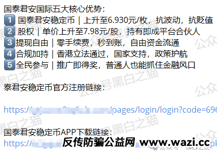 反诈防骗|碰瓷“国泰君安”搞稳定币资金盘,这帮骗子真的是与时俱进,挖空心思搞诈骗.........