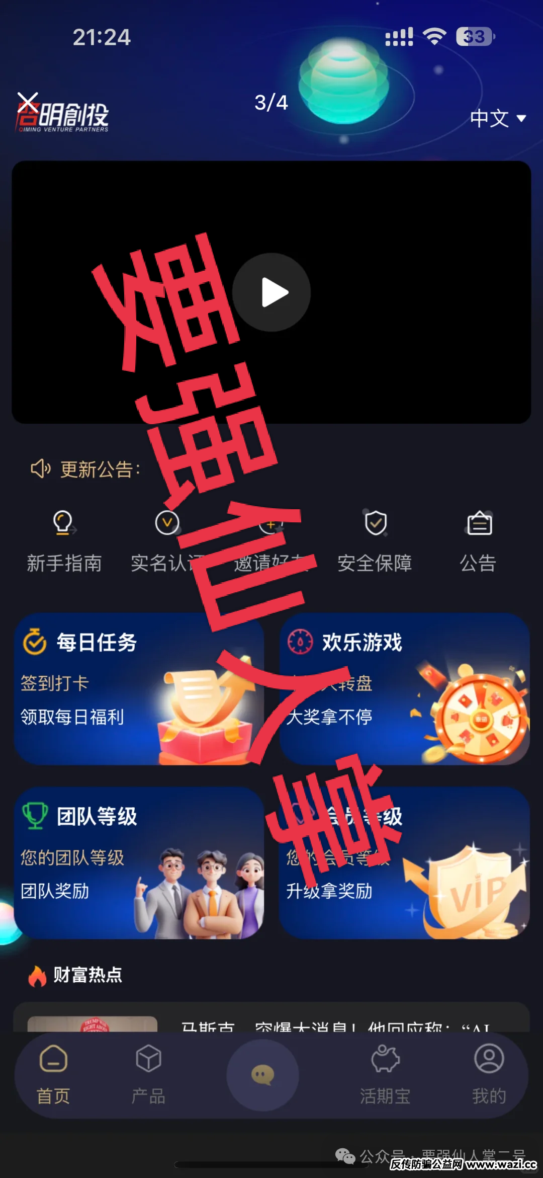 “启明创投”近期突然密集推出“超高利产品”“充值送好礼”“拉人头返现”等活动,群内更有大量“勾托”晒高额收益单,营造“捡福利”的假象。实则这是资金盘的“临终狂欢”——骗子通过“超高利”诱惑用户追加投资、发展下线,目的是进行最后一轮资金收割。仍在犹豫的投资者需抓紧撤离,同时务必劝阻身边亲友,一步踏错可能就是“倾家荡产”。