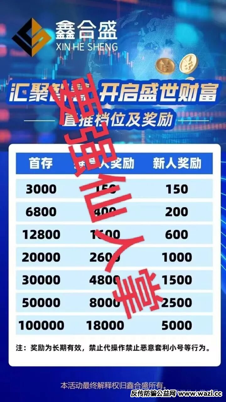 作为典型一轮杀猪盘,鑫合盛虽被指冒充“老卓余孽”名义的诈骗,但对比“联众投”“新利众”,其套路更显低级。固定玩法为周一、周四一键跟单,周五至周日需将余额转入“余额宝” ,最低投资门槛3000元。目前虽推出拉新活动,但新人参与寥寥无几,这个盘子已经是“半死不活”,处于高度预警状态,即将崩盘跑路。
