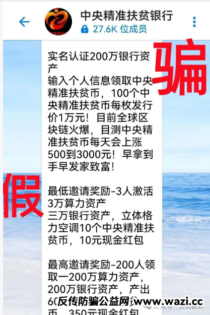 根本不存在这个银行!纯属骗子编造的名称,利用大家对“扶贫”政策的信任进行诈骗,非常低级但仍有不少人中招。如果有村里的人,建议询问下村长,因为他们是比较了解一些扶贫政策的。