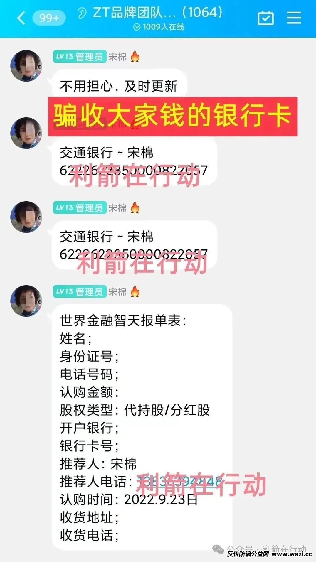 敢用真实姓名,敢用自己的银行卡公开诈骗吸收被骗人超亿元资金,实属罕见!宋棉落网后,群龙无首,群里面的被骗人说出真相,请看截图。
