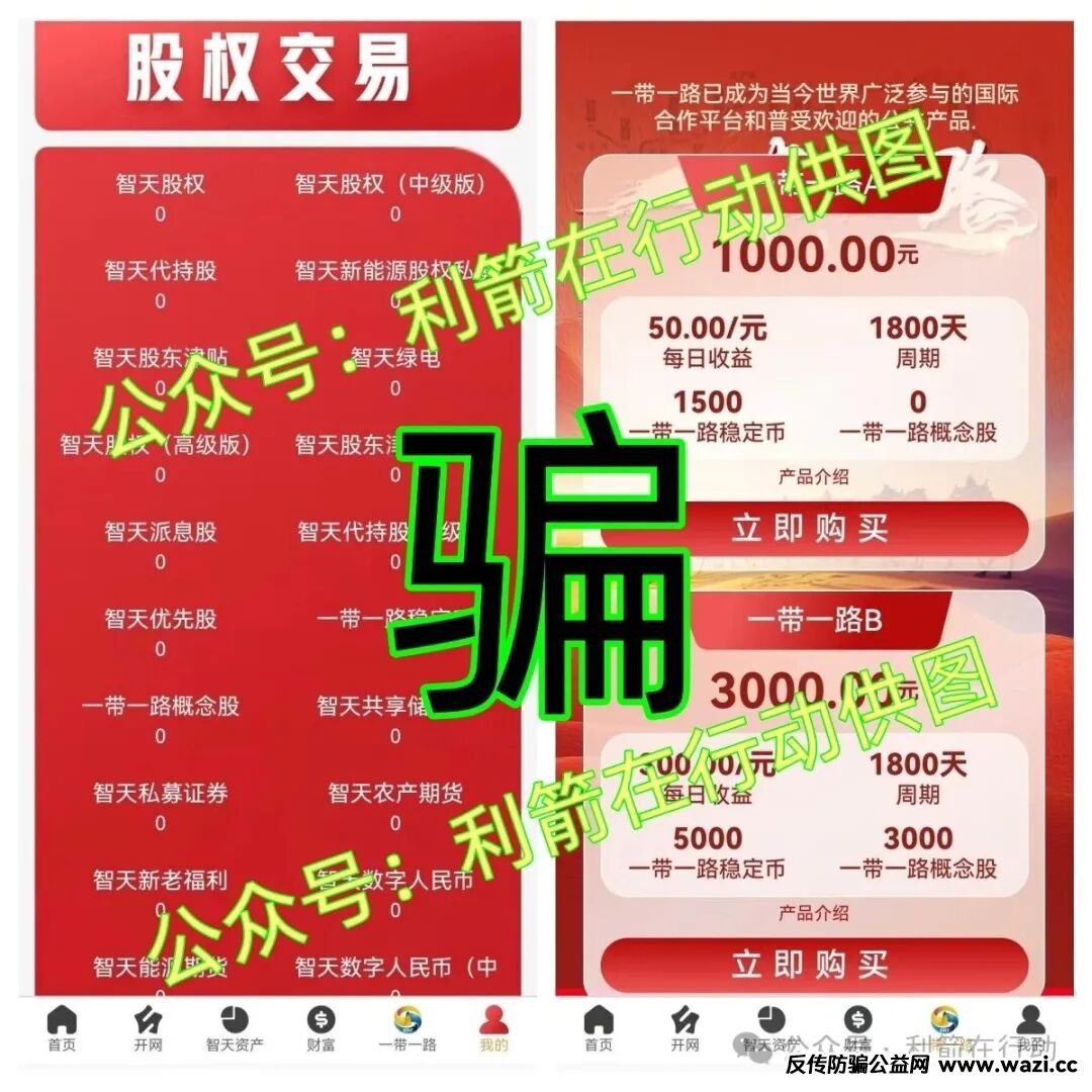 至于“智天集团”APP中的“股权交易”及虚假的“一带一路”理财产品,都是假的,是诈骗道具罢了。