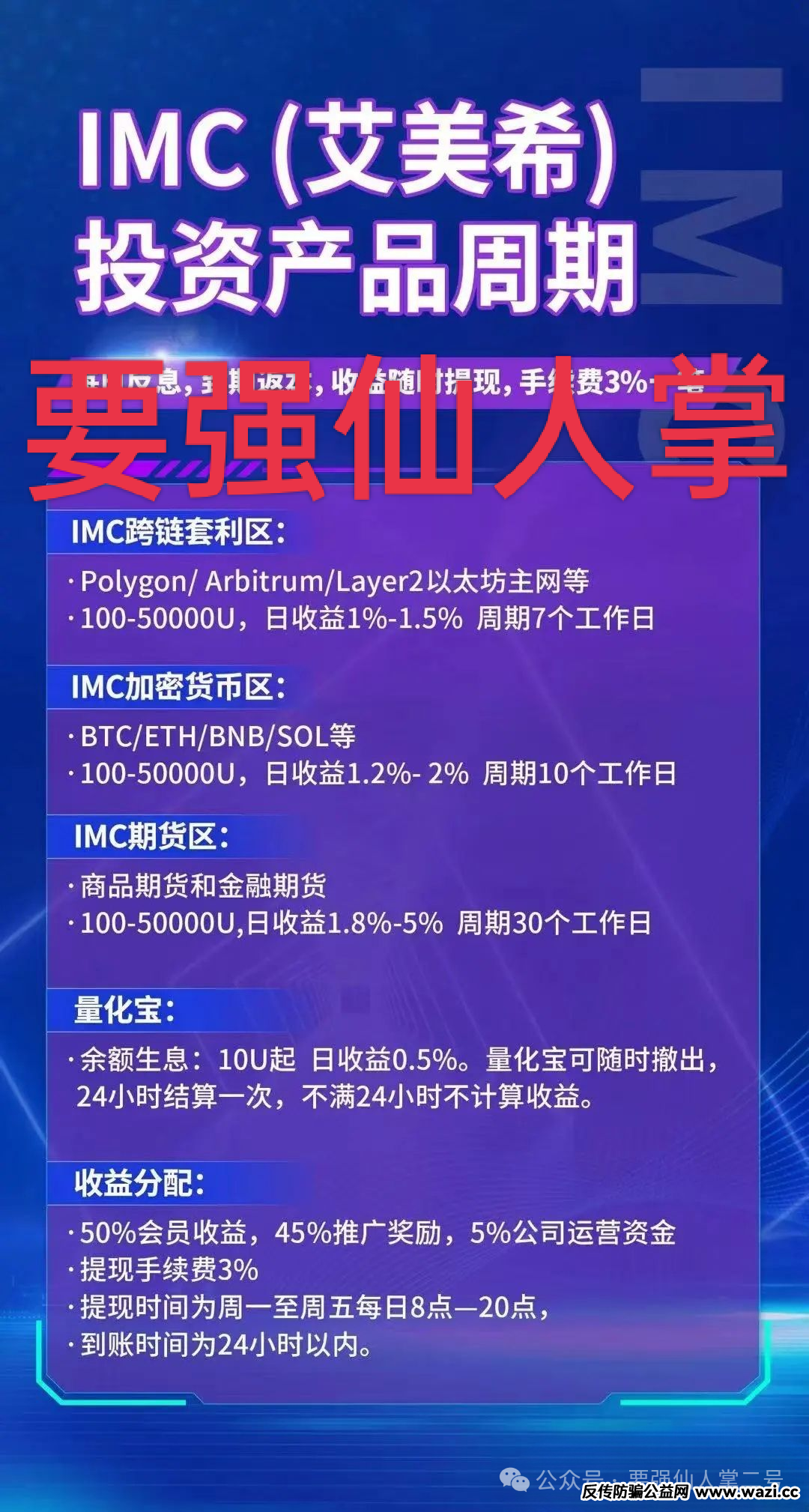 每天都有各式各样的盘子上线,同样也会有各式各样的盘子崩盘跑路,今日必须重点曝光一个短命盘资金盘——“IMC(艾美希)”,话不多说先上图: