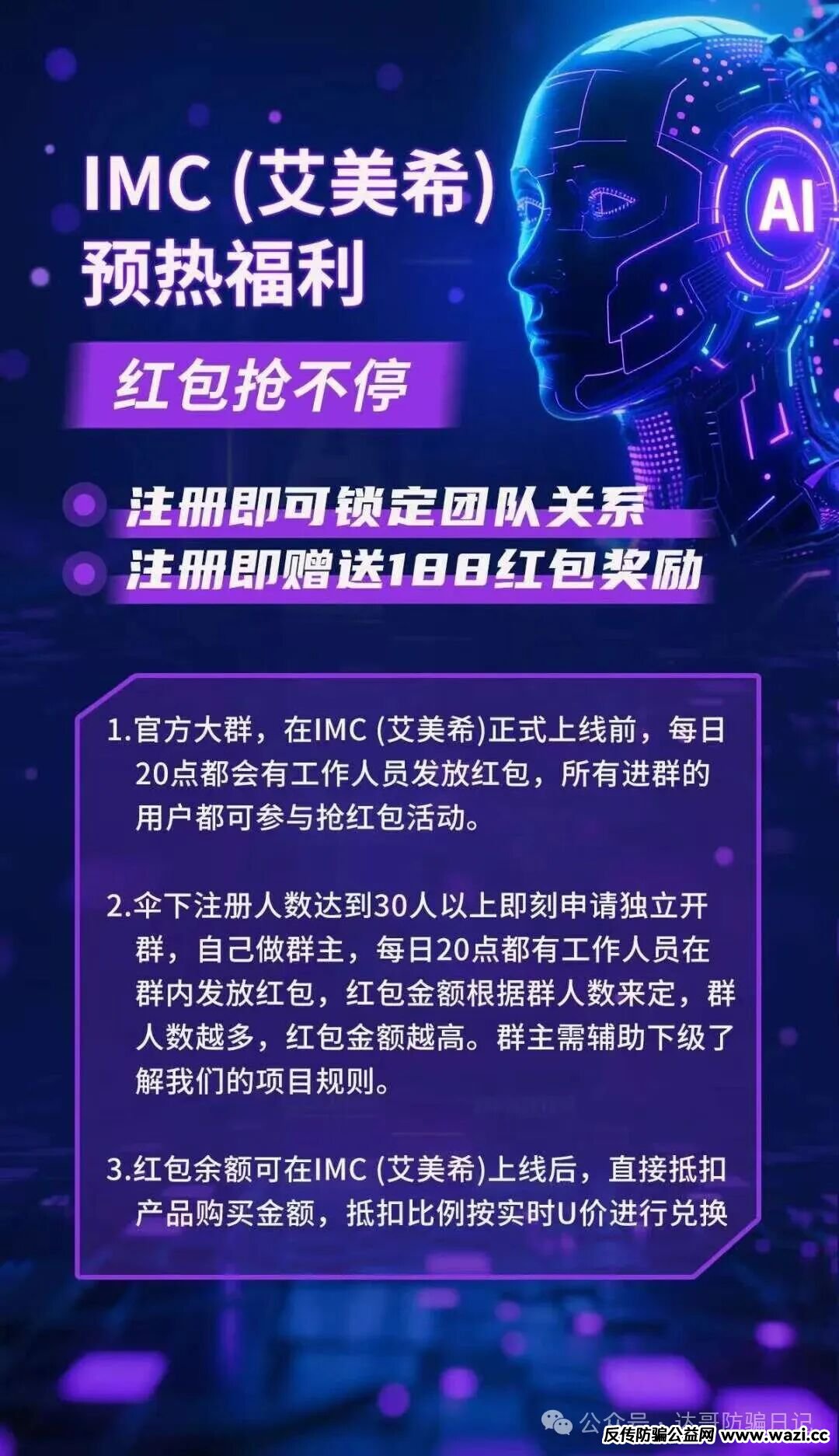 预警提醒【IMC(艾美希)】资金盘明日上线,目测应该比较短命,不建议参与,看到请远离!...