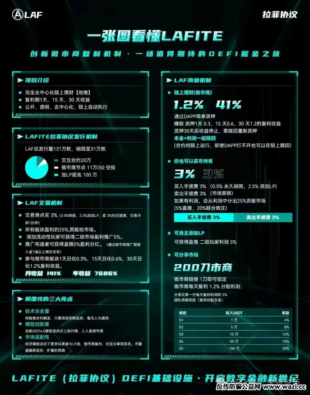 项目方嘴硬说来自“流动性收益和交易分红”,但现实是LAF代币除了在这个盘子里流通,没有任何实际用途。不能当钱花,不能换服务,更不挂钩任何实体业务,纯纯的“空气币”。说白了,现在给老用户的收益,全是新用户刚投进来的本金。这就像拆东墙补西墙,一旦没人新进来,资金链立马断。