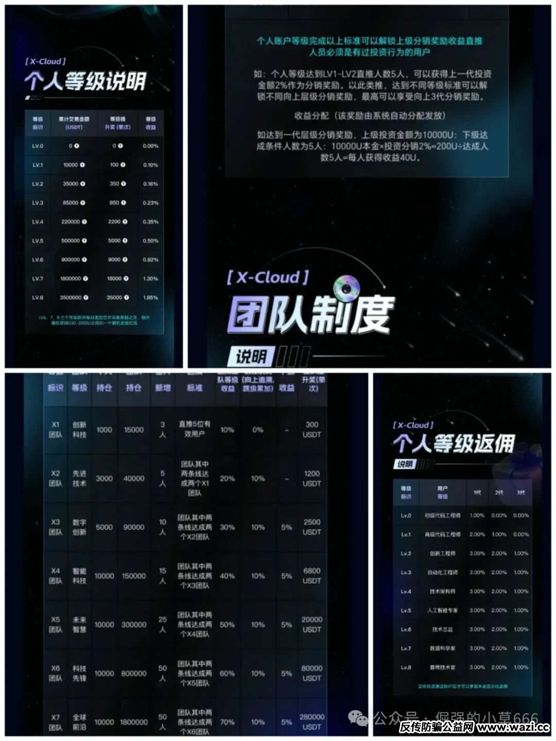 第二,其运营模式赤裸裸暴露了资金盘的本质。静态收益+动态拉新+多层级返佣,三大机制环环相扣,构成典型的金字塔结构。早期入场者确实拿到了钱,但这笔钱并非来自项目盈利,而是来自后期投资者的本金。