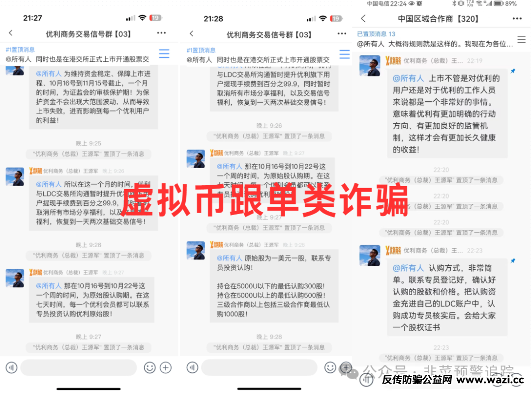 优科创虚拟货币跟投项目,10月7日起暂停提现,还推出优惠赠送福利,虽宣称 10月15日恢复正常,但这明显是最后收割的套路。它号称比特币交割跟单获利,回报诱人,然而参与需下载未备案的境外APP,收款账户为虚拟货币,涉嫌诈骗、洗钱。此前已有不法分子冒充公司,以“专家带买虚拟货币获高额利润”行骗。这种项目极可能是资金盘即将关网,投资者要赶紧远离,避免财产损失。