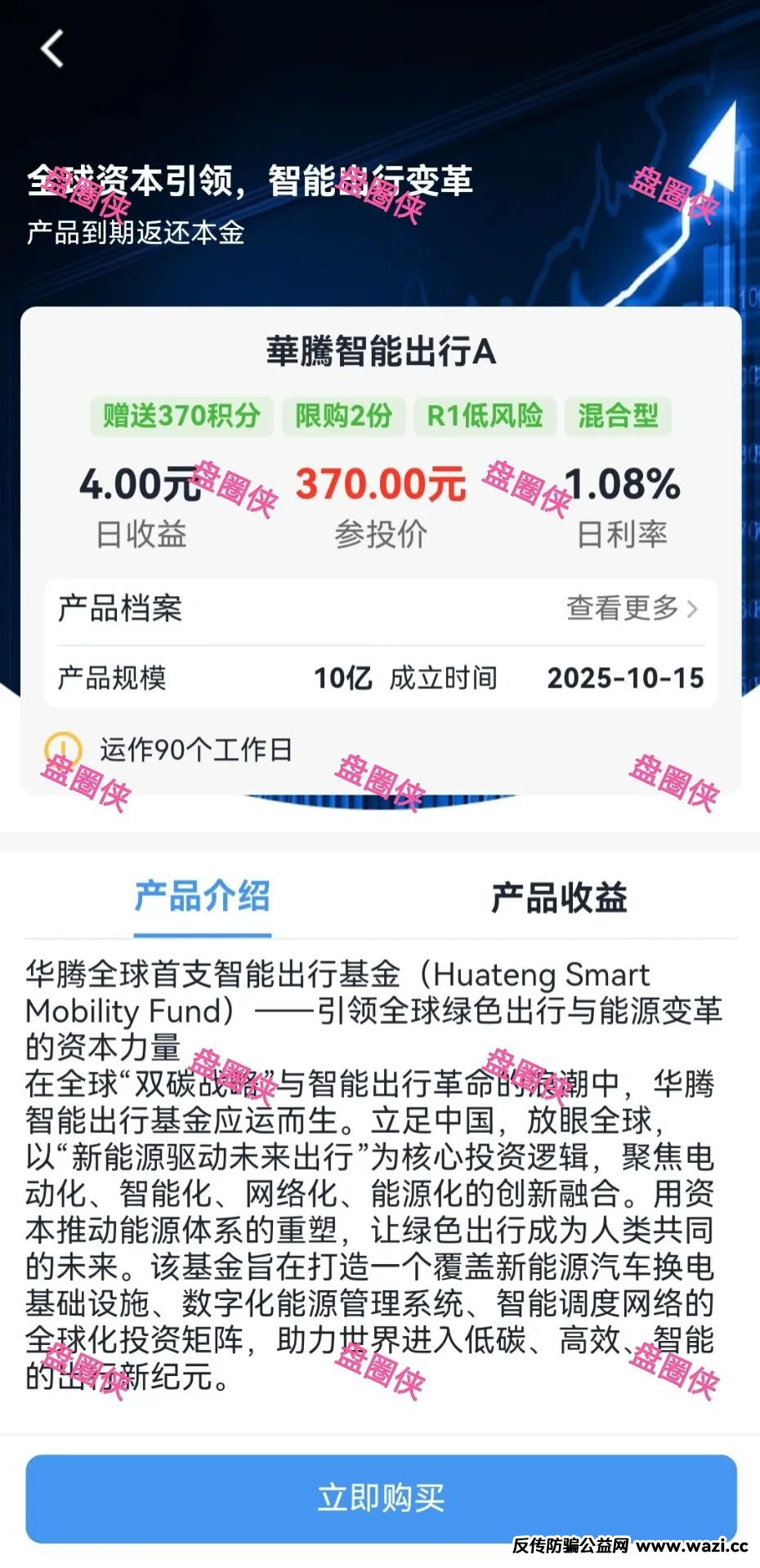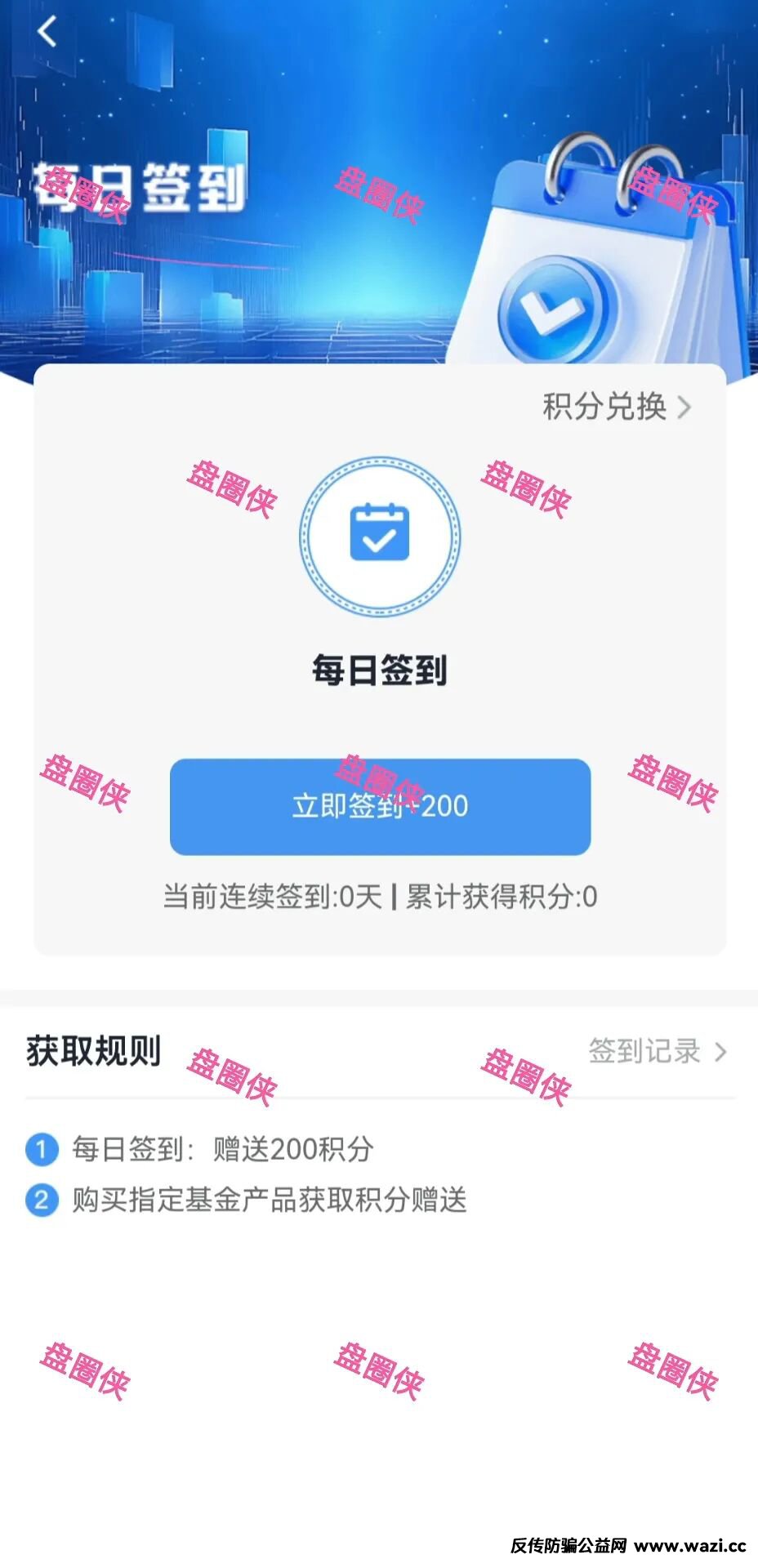 华腾星宇:10月15日正式上线的分红类资金盘项目骗局。注册需简单实名,每日签到获得200积分,购买产品也可获得1:1的积分,积分达1000可用于抽奖和兑换分红加息券。
