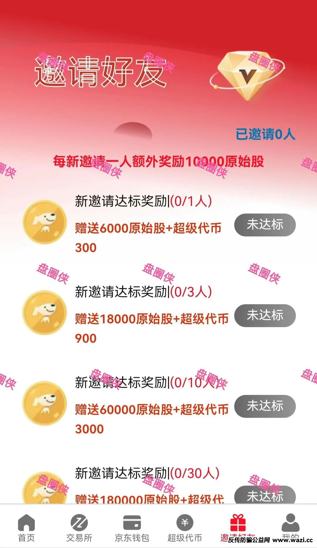 注册实名认证赠送3630000元余额、5000超级代币、5000稳定币、10000原始股,超级代币可兑换产品,7天后产出稳定币和原始股,超级代币、稳定币、原始股都可兑换成现金,20日-22日开放提现,估计又是坑骗中老年群体用户信息的,毕竟这类群体本着不要白不要的想法,反正也没损失,万一就能提现呢?骗子就是抓住这一点来坑骗的,广撒网多捞鱼,总有愿意尝试的。