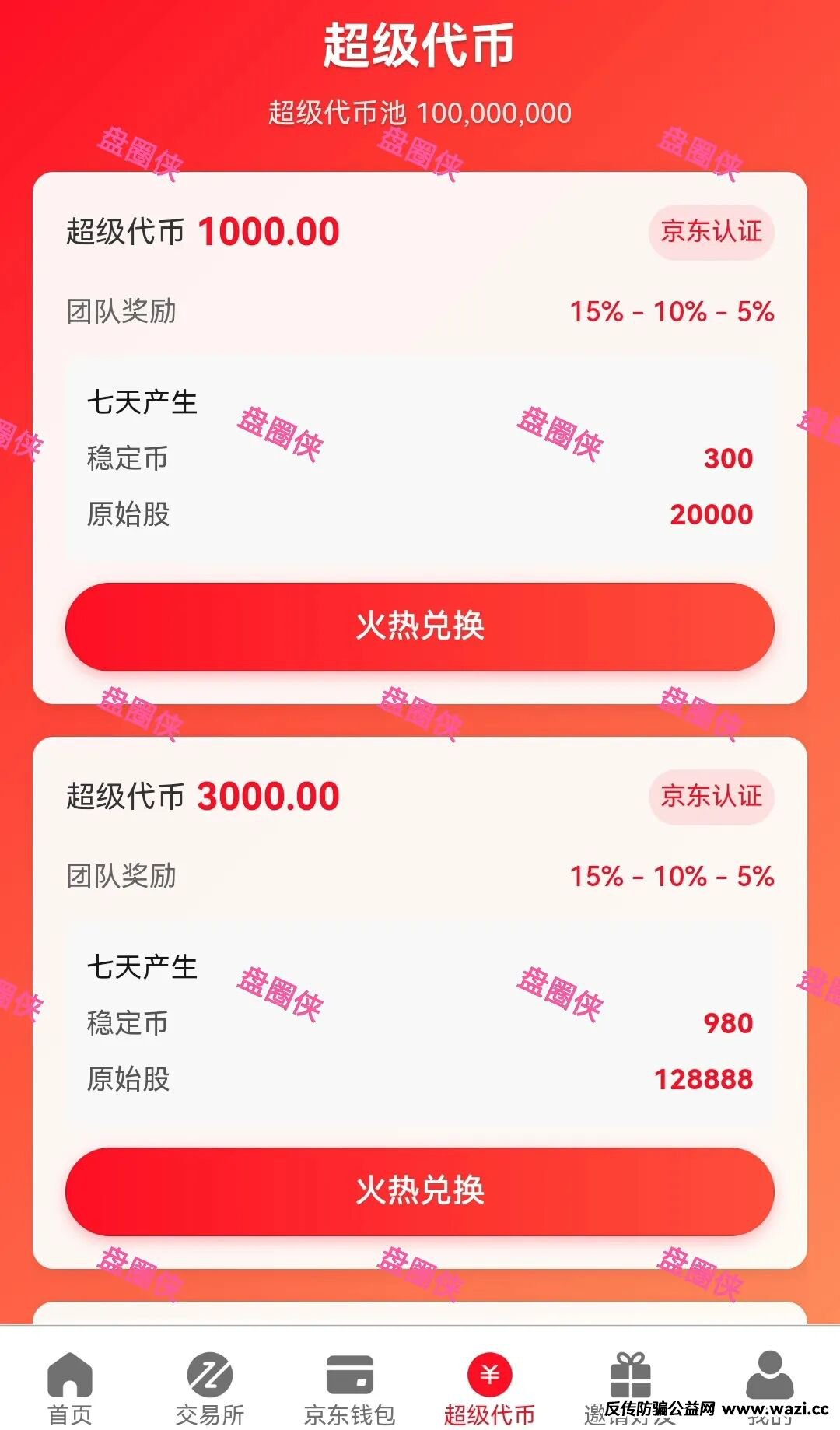 京东稳定币:9月份上线预的冒充京东名义所进行的资金盘项目骗局。宣称京东进军加密货币,诚邀广大群众共同参与分润。 注册实名认证赠送3630000元余额、5000超级代币、5000稳定币、...