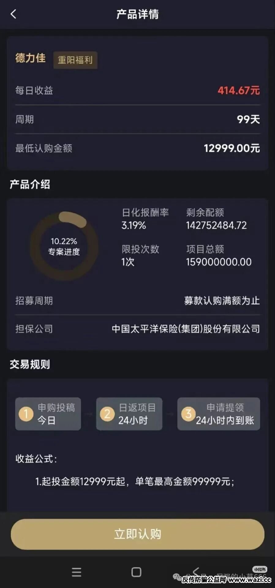 请所有人清醒:高收益永远伴随高风险,而所谓“无风险高收益”,本身就是最大的风险。任何脱离监管、承诺刚性兑付的互联网金融产品,都不具备合法生存空间。保护好自己的钱袋子,不是靠运气,而是靠清醒的认知与果断的行动。立即停止向此类平台注入资金,能提现的尽快操作,保留证据并报警处理。转发这篇文章,让更多人看清这场骗局的全貌。你的每一次分享,都可能阻止一场悲剧的发生。点赞关注,不让骗局继续蔓延。