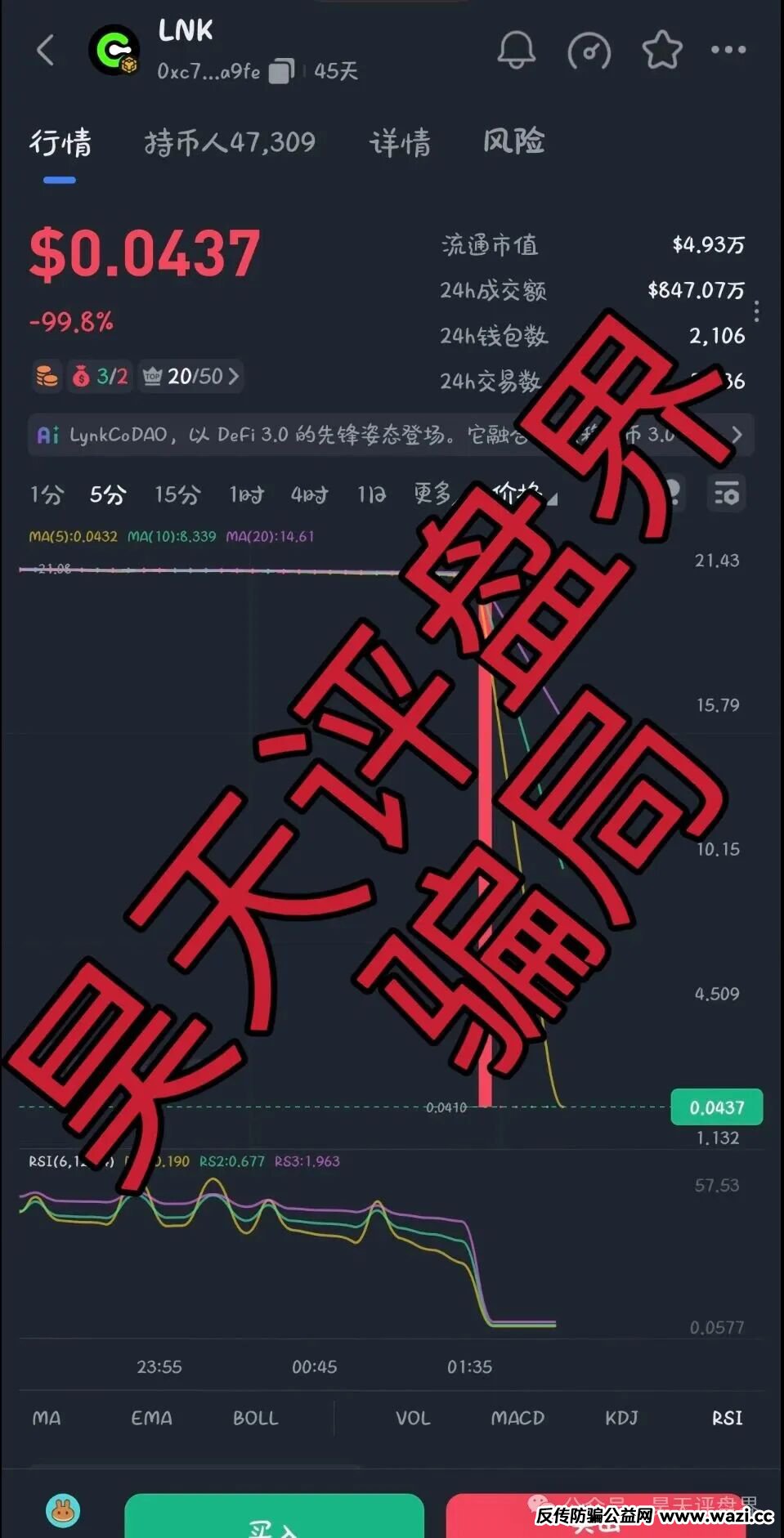 LNK项目上线一个月零15天,前天也是瞬间归零,玩家血本无归...
