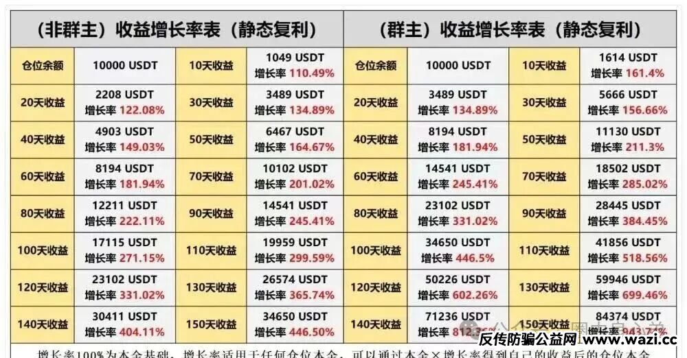 在来所谓煜志金融(对外自称“HKEX煜志金融”)就说下面10000U仓位,基本就是两个月翻仓,还带利滚利每天增长,我想看了该收入和回报率,不得不以都是会为之心动的,这种泡破本质就是骗局和高收益骗你入场的筹码,其承诺的“收益”并非来源于真实的市场盈利,而是后来者的入金本金。