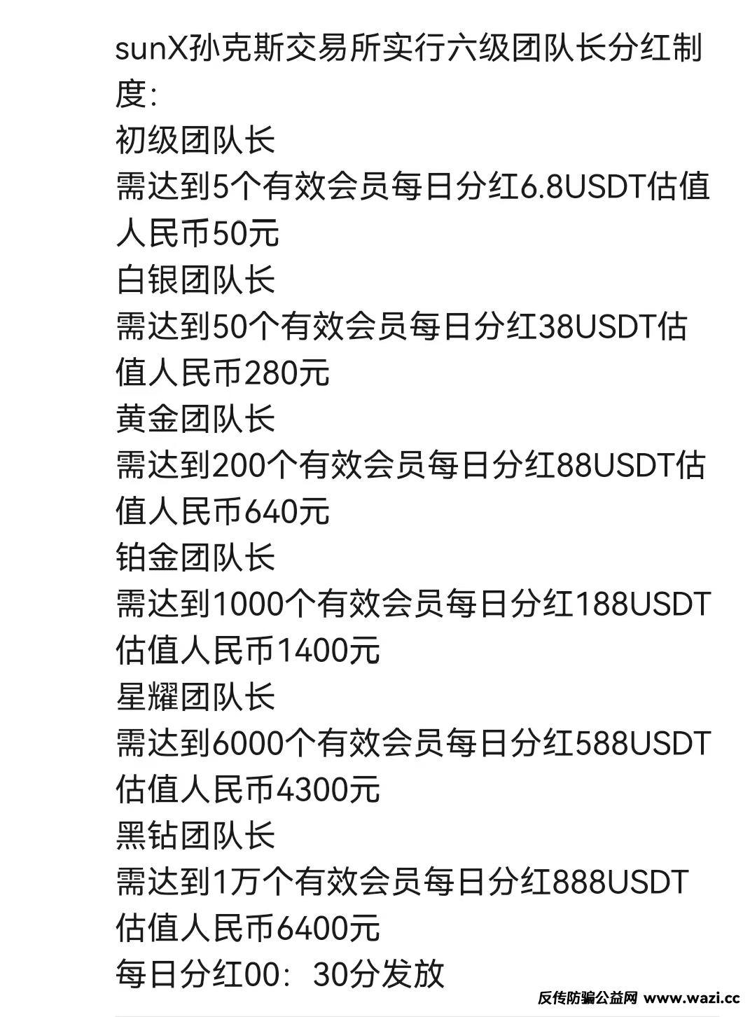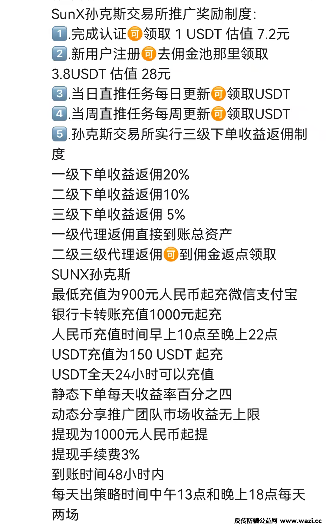 这是“SunX孙克斯交易所”的模式制度,各位自己看吧,带模式带制度,还带拉人头,这些都不说了,也能理解,毕竟不是国内的项目,而且不拉人头的话,项目方赚谁的钱,割谁的韭菜!只是提醒各位要小心这样的项目,不要被别人卖了,还要帮别的数钱!