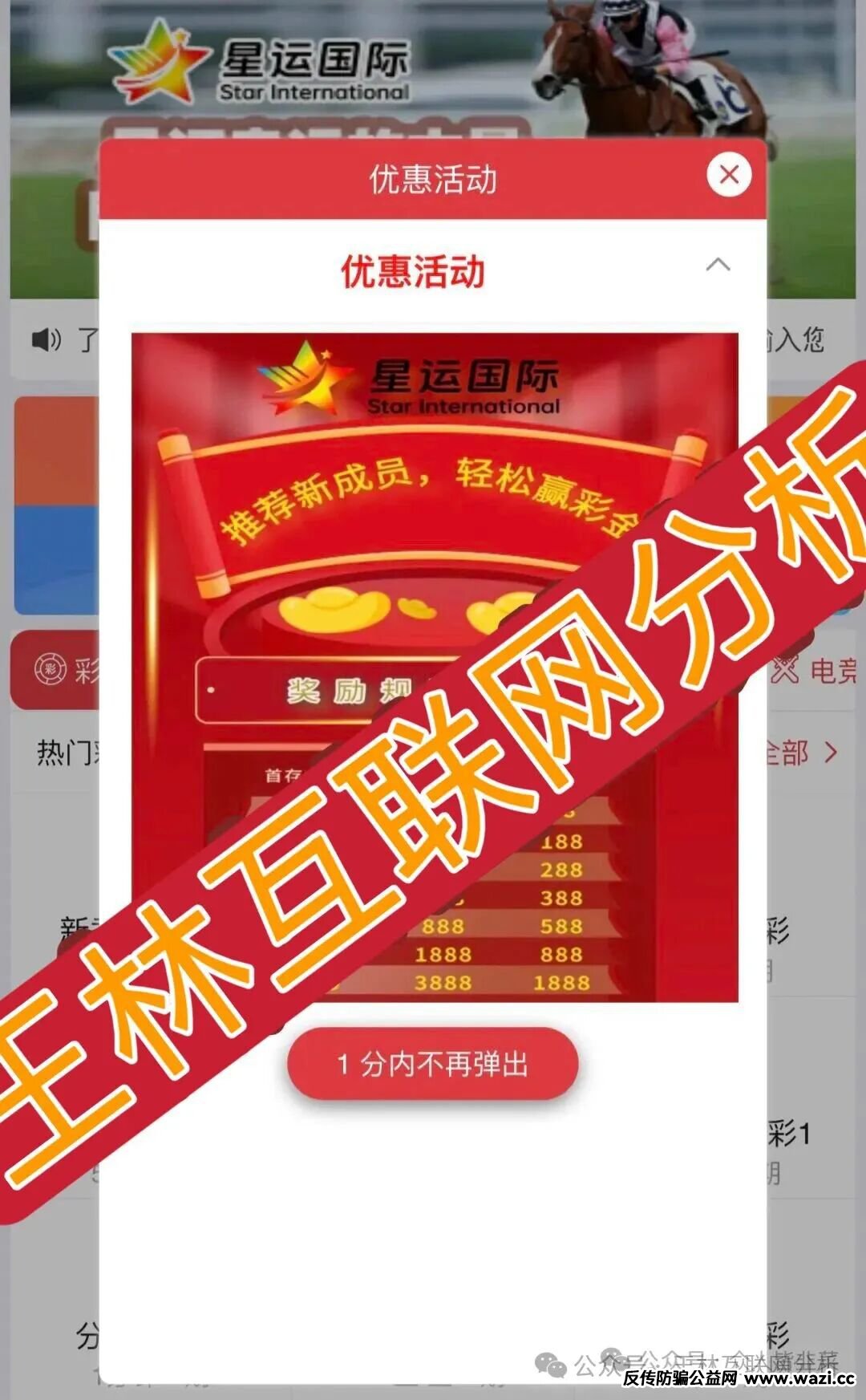 星运国际彩票骗局 套用香港赛马会噱头的网络彩票跟单类资金盘骗局,每天进行六合彩票跟单赚取收益,属于跟单类诈骗,高度预警。 必特体育骗局 足球反波胆资金盘骗局,前几天已经崩盘跑路...
