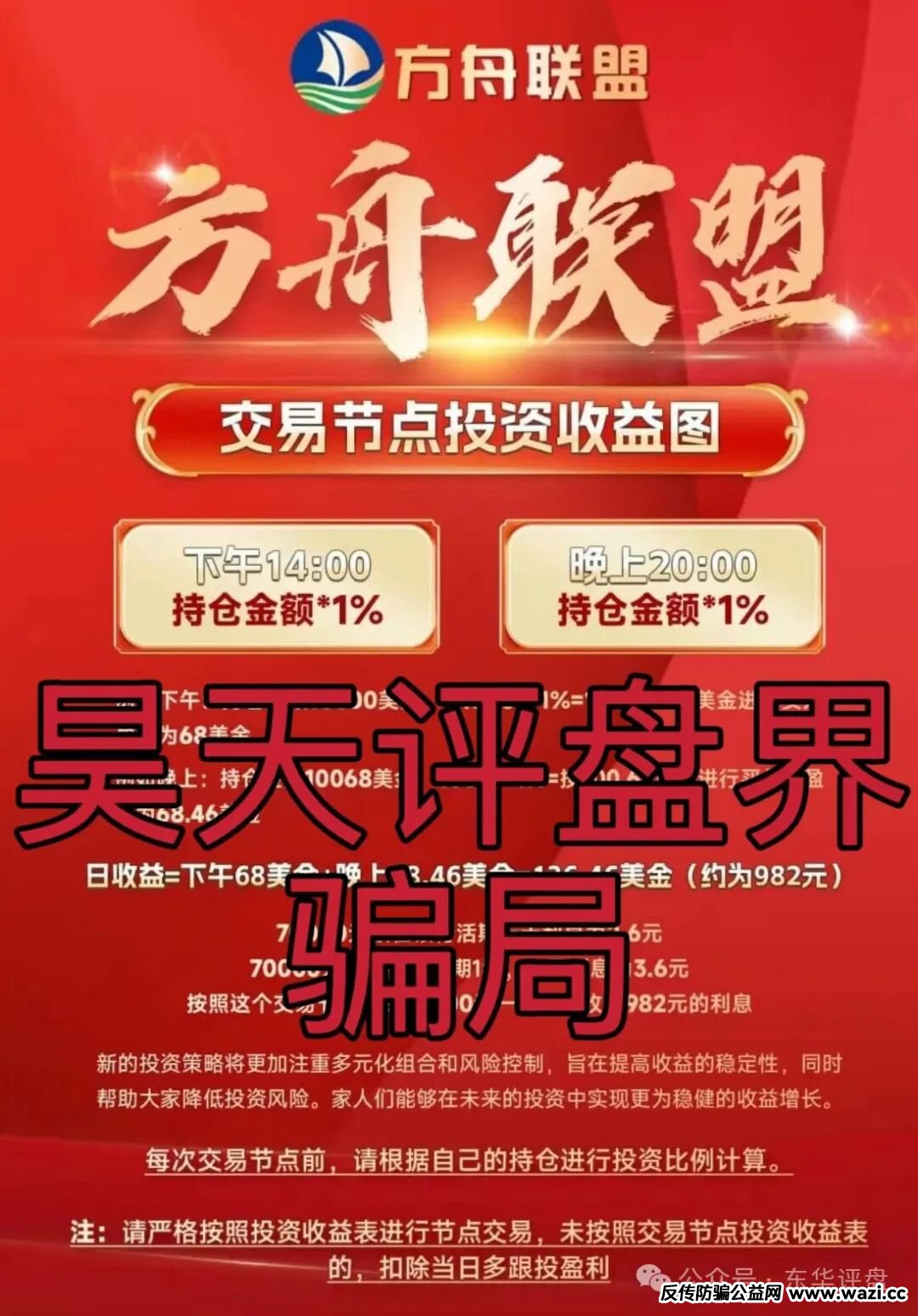 昊天评盘界:近期不少粉丝爆料了一个叫币联胜方舟联盟交易所的合约跟单类资金盘骗局,此骗局运行了也有半年了,此骗局日收益2%以上,月收益60%以上,会员5万人左右,操盘手也是圈了几个亿...