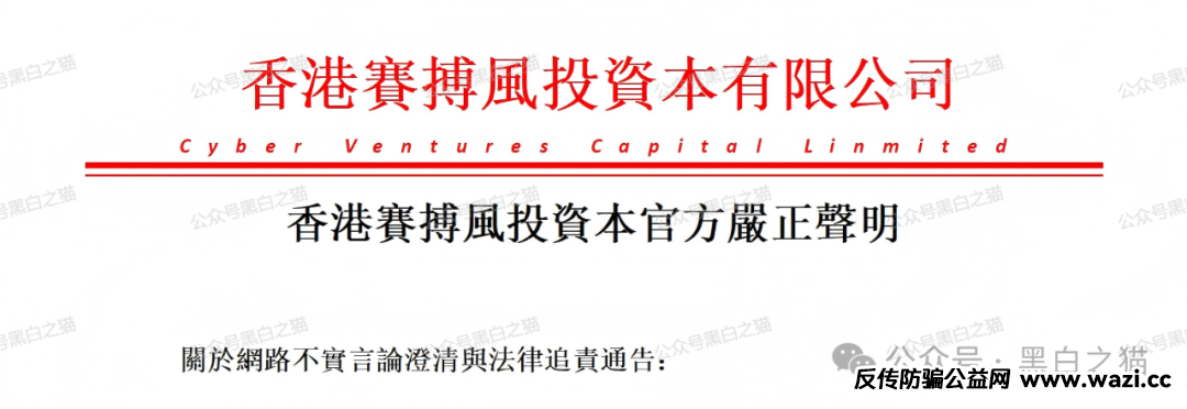 2. 香港赛博风投资本有限公司只是在香港注册处有注册编号和商业登记号,证明注册公司而已,而在香港证监会没有任何此公司中介人持牌信息,所以谈不上被香港证监会列入异常。
