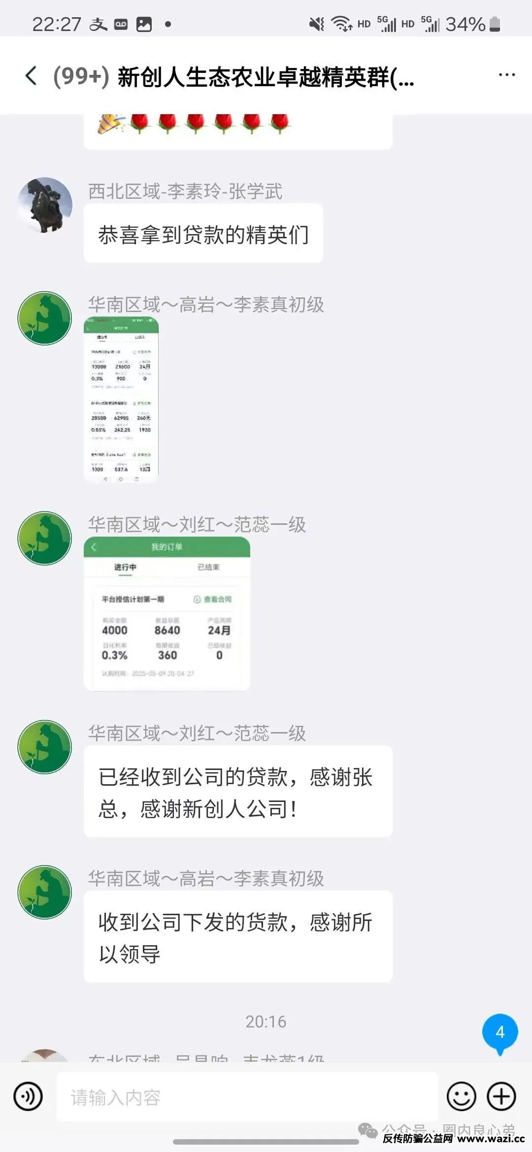 新创人属于内部聊天软件和群聊,毕竟现在不能光明正大干诈骗的事情,微信聊天都是监管比较严格,索性现在一般非法的资金盘都是有各自的聊天软件,一般有导师定期洗脑和充值信仰,各种晒单,营造该平台出赚钱的真像。