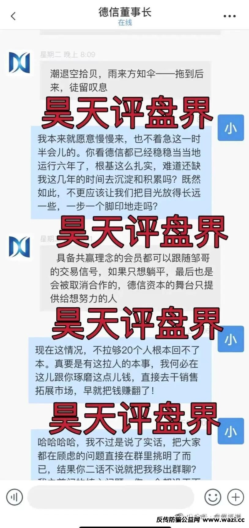 这几天不少粉丝让重楼曝光一下德信资本(VT交易所)跟单类资金盘骗局,是鑫康佳骗局换了个名字又来了。开盘没多久就开始大量单割会员了,这伙诈骗团伙也是够畜生的,高度预警,即将崩盘跑路!