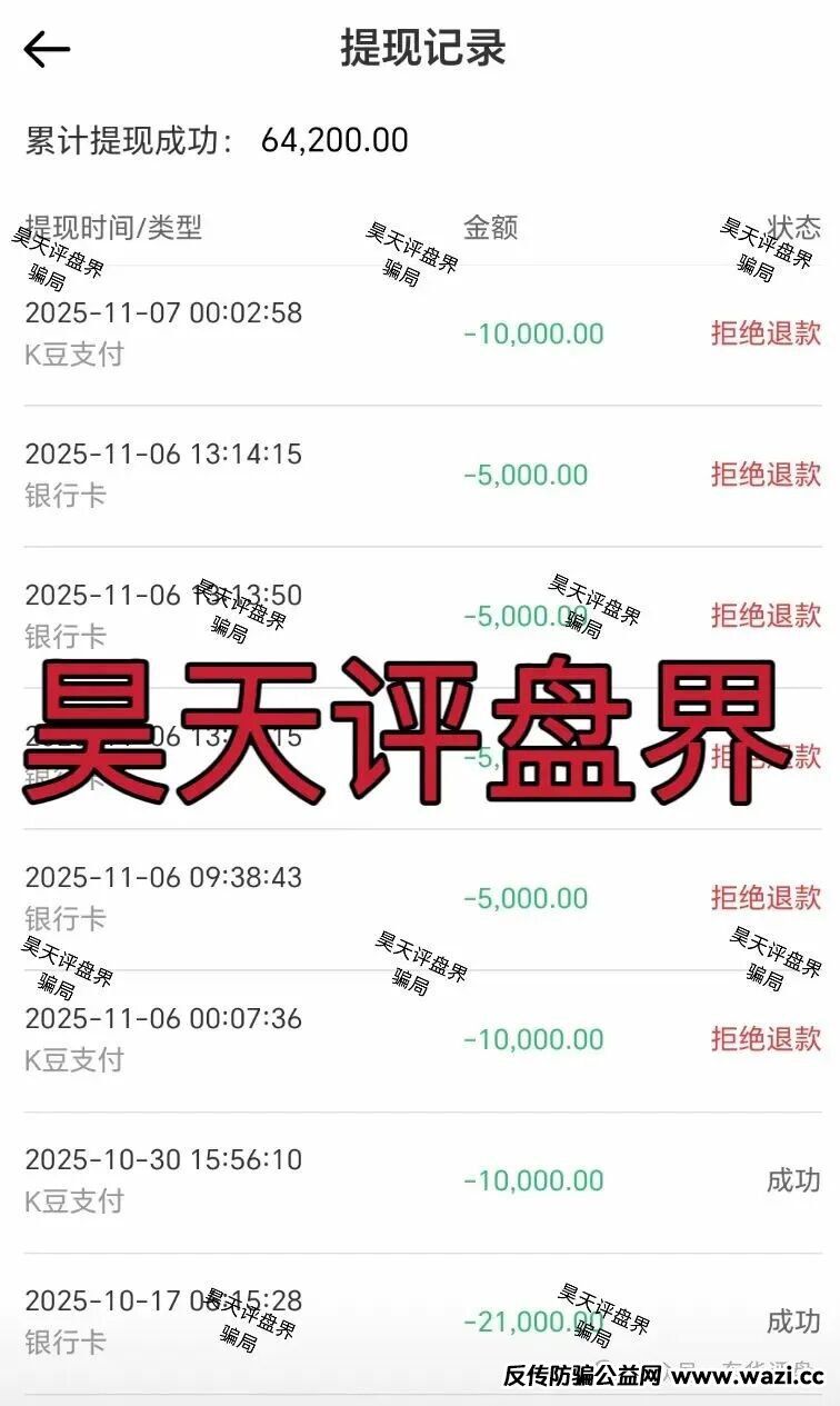另外还有不少会员反应从11月6号开始其账号就已经不能提现,一直是“拒绝退款”状态,平台给出的理由是让其去拉新人才能提现,后面账号就直接被封号了,目前已经无法登录,这就是典型的单割,受害者给昊天爆料今天还有其他地区还在疯狂洗脑搞所谓的大会,看来是准备最后收割了...