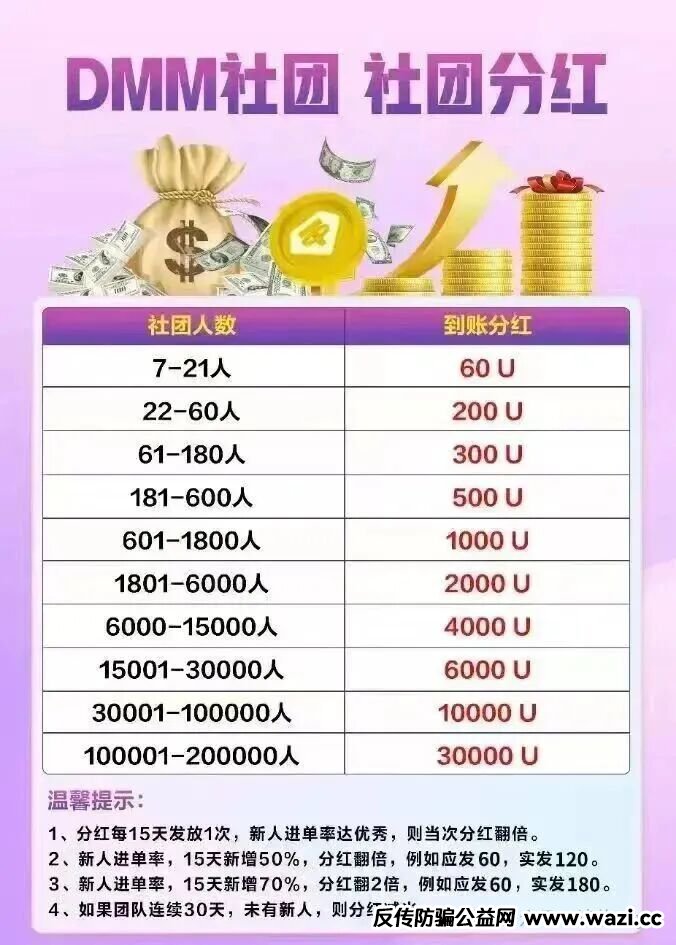 刚开始的时候 很多网推团队都加入了 ,目前来看 已经开了一个月 这些平移会员 包括网推团队已经开始回本 马上就不在裂变 。所以这个盘子 距离崩盘 估计也很快了 ,甚至随时都会崩盘直接跑路 。