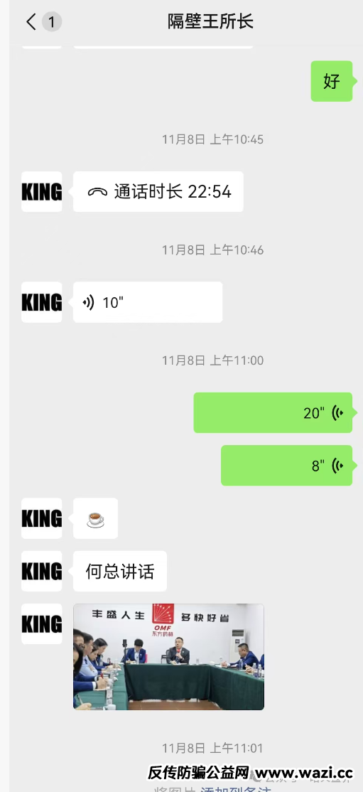 小诺直接扫码添加了广告上的联系人微信。小诺以咨询挂靠业务的身份,和这个人详细聊了几句才知道,这就是为直销企业招揽挂靠公司的广告。经小诺和此人沟通之后得知其合作的直销企业有“海之圣”、“绿活美地”,还有本文曝光的正主“东方药林”。经小诺与此人进一步沟通得知,这三家企业均面向全国招揽挂靠企业和团队。每家公司对挂靠的要求大同小异,差异基本是对月均销售业绩的要求不同。其他的暂且不提,单说东方药林对挂靠公司的销售业绩要求是每月3000万以上。业绩不达标的公司,不会与之合作。看来东方药林这几年的业绩做的不错,小公司根本不入人家的法眼。接着小诺又向此人咨询了几个问题,这个人看小诺对东方药林很上心,就开诚布公的承认了自己是东方药林的员工。并且正在参加东方药林董事长何总主持的公司会议,并且给小诺拍了现场照片,以证实自己的身份。(下面有小诺和这名东方药林员工的通话录音)