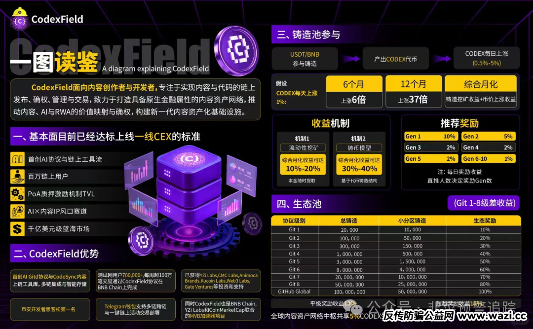 CodexField是东南亚诈骗团队借壳包装的传销资金盘。它与真实获币安黑客松比赛奖的项目无关,却靠虚假宣传忽悠市场。操盘团队前期以高额返点吸引市场领导人。真正有价值的项目不会走此模式,币安相关人员也不会为其背书。大家要认清真相,若明知是骗局还拉人参与,将承担后果。投资需谨慎,勿盲目入局!