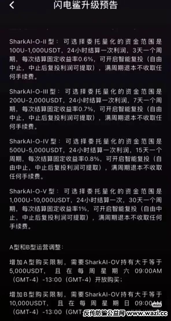 再看它的前世——VAX资金盘。2025年9月崩盘前,也是搞“资产置换+追加投资”套路,37天卷走3万投资者数千万元。如今闪电鲨换壳重生,推出“OV新模式”,收割效率更高,存活周期只会更短。