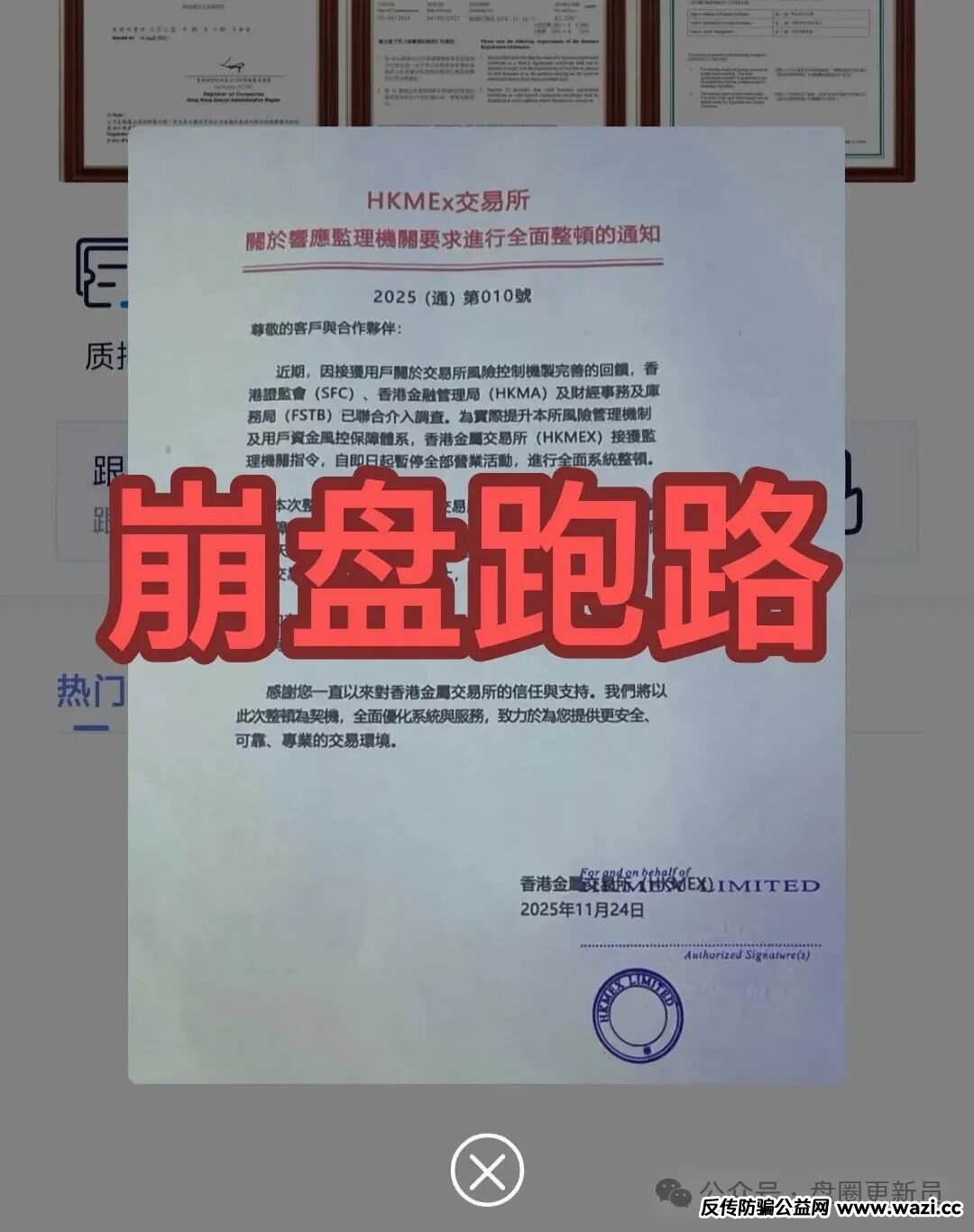 HKMEX交易所 澳门辉煌火炬联盟资金盘骗局,今天已经崩盘跑路,早前就已经开始套路,变相的忽悠参与的玩家加仓,加仓永久增加一次跟单信号,你以为的好事,实则是骗子特意下的套。