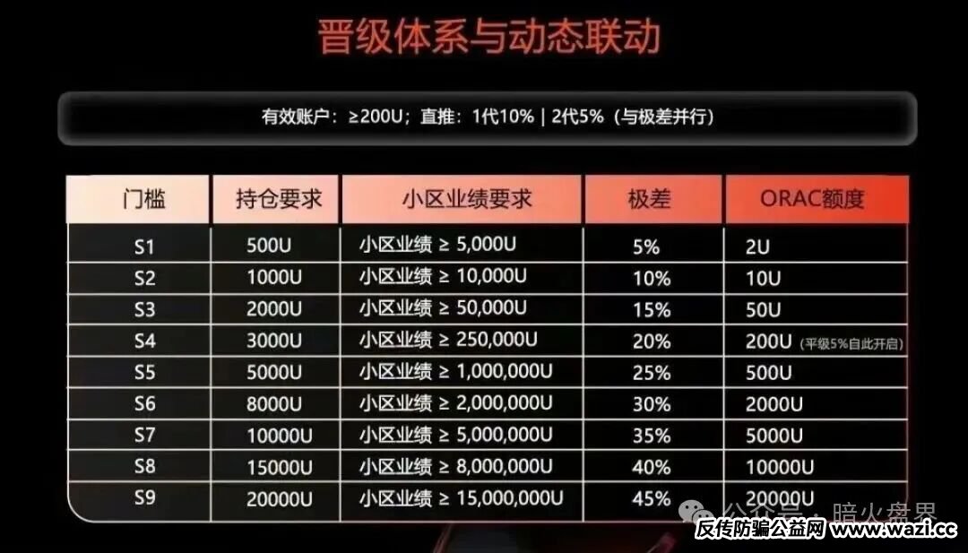 再来看看所谓“ORA协议”,理财模式和涉及层级极差制度,又有动态和静态布局,最高级别可以抽层45%,真是可怕的层级极差抽层,不知道目前的底池够不够这些一开始,就通过后台开通权限的团队长核心拿,虽然目前市场协议满天飞,但是最终都是热度过去,都是昙花一现,并不能坚持多久,投投机可以切物太过去信仰某件事,不然最终都是讨不到好果子吃,可能赔了夫人又折兵。