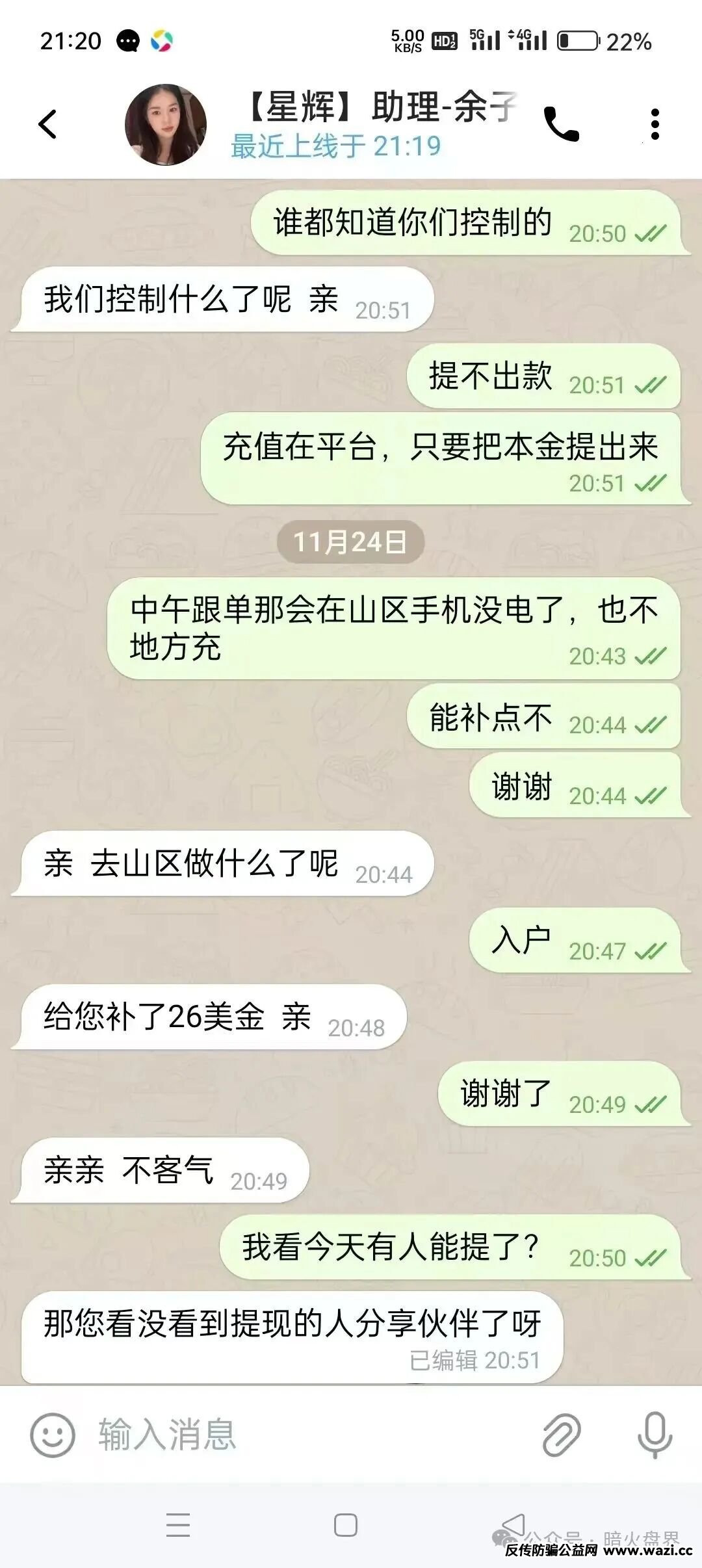 最近爆料项目属实有点多,这不又有一个受害投资者,反馈“星辉资产—瑞像基金”平台,关于这个所谓股票跟单,只能充值不能提现,要想提现就得拉人垫背,目前属于各区域型单割。 受害者说...