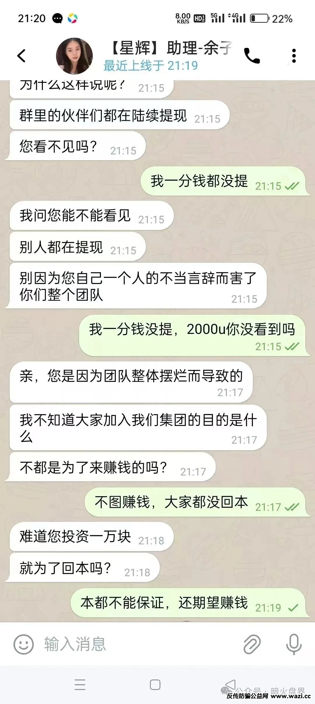 “星辉资产—瑞像基金”,该投资受害者与客服的对话窗口记录,大致意思就是,你充进去容易,想提出本金就需要你拉人垫背或者新增业绩,这不明摆着黑吃黑,和你打太极,你也拿我没办法,就这样的格局,你还这么卖力给狗庄送人头干嘛?真是钱多闲的没地方放。