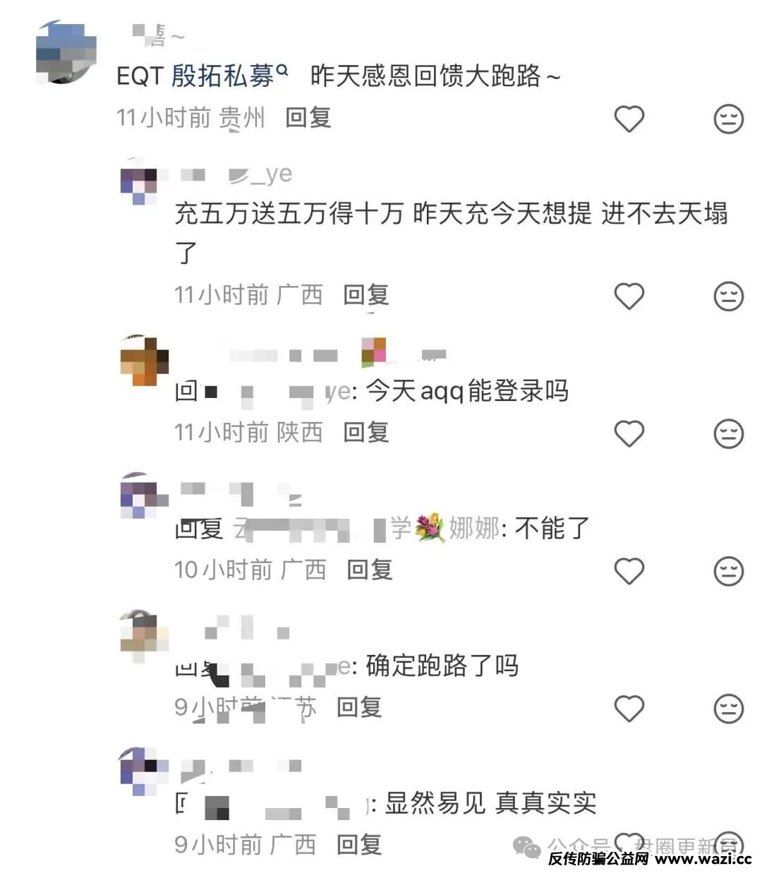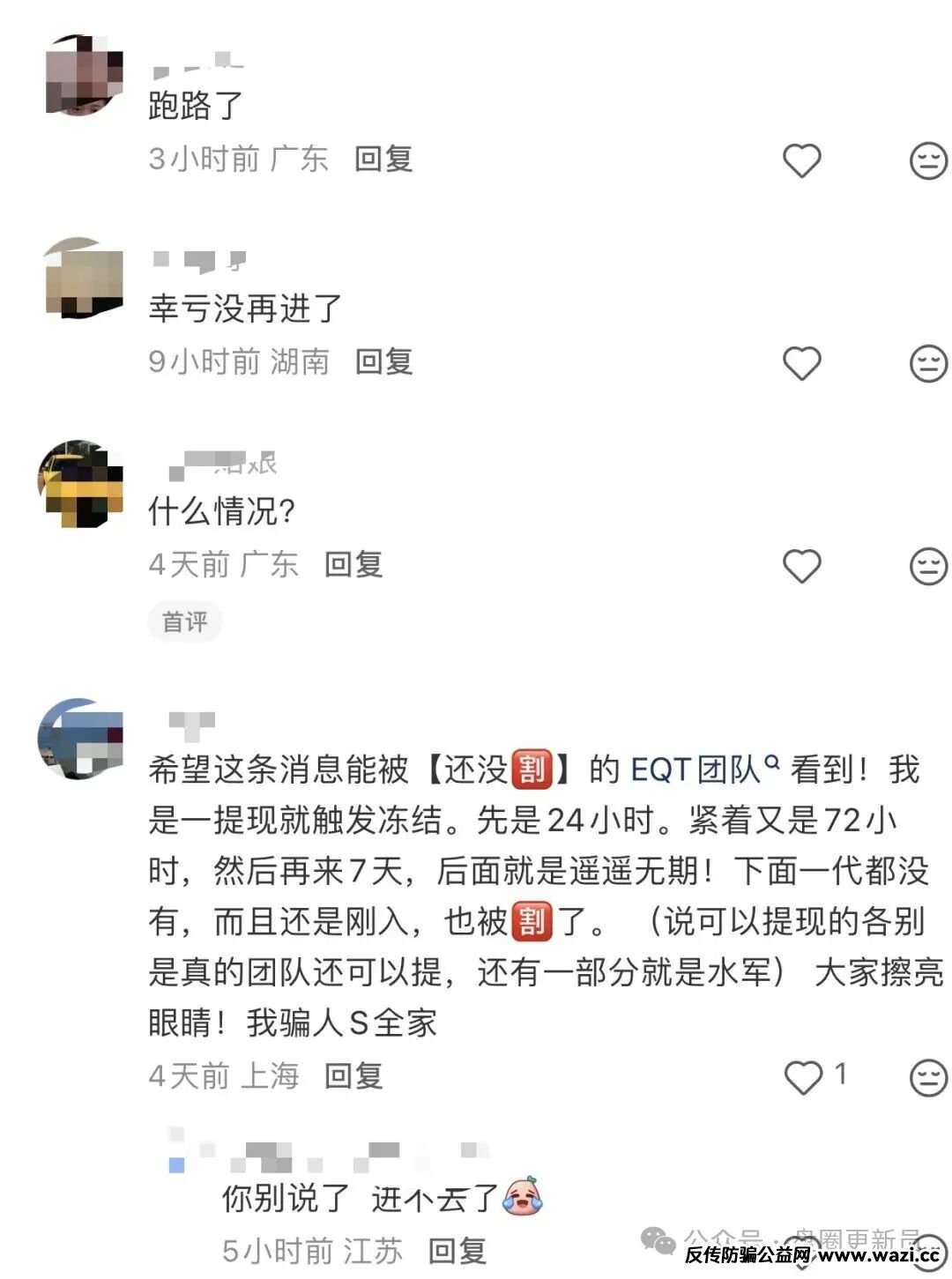 最新消息【EQT】目前已经崩盘跑路,身份信息都是骗子通过伪造冒充正规平台包装来的,属于分红模式骗局。...