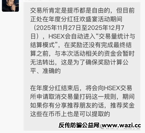 当提现手续费高达100% 时,这意味着什么?你提现100元,要交100元手续费,到手为0;提现1万元,要交1万元手续费,到手还是0。这已经不是普通的投资亏损,而是赤裸裸的抢劫。 最近,所有HSEX煜...