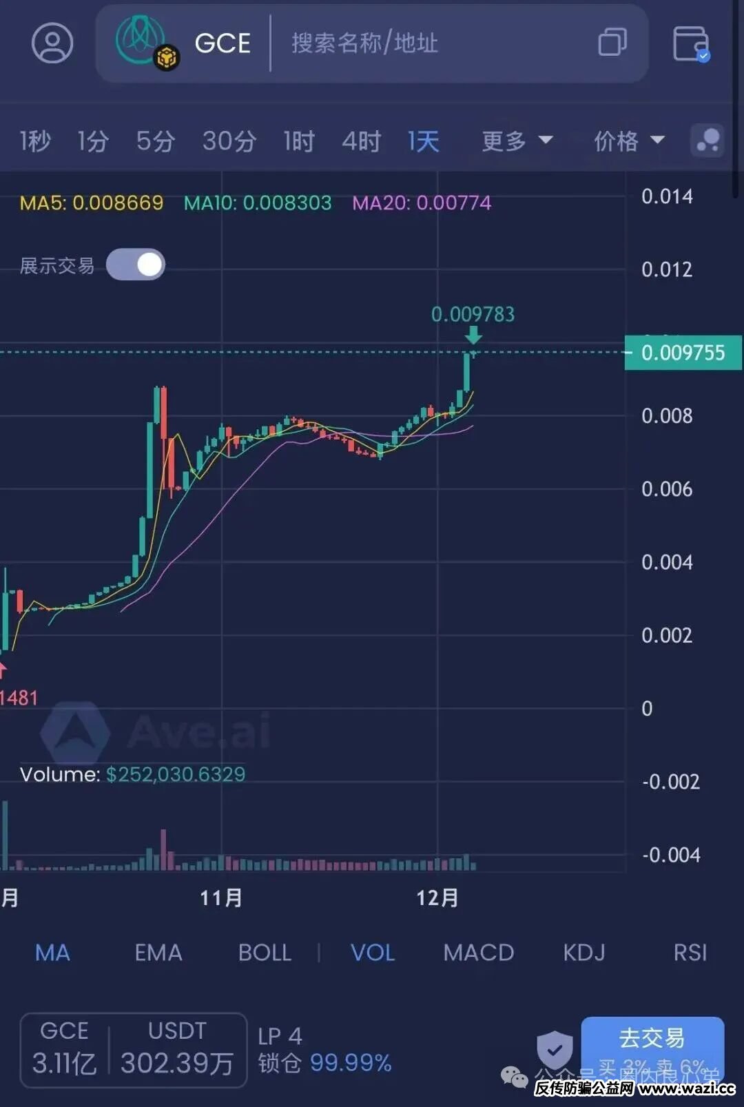 下面是在ave发行的代币GCE,目前底池已经圈钱302wu,项目方老鼠仓一大堆,随时都有砸盘的风险。