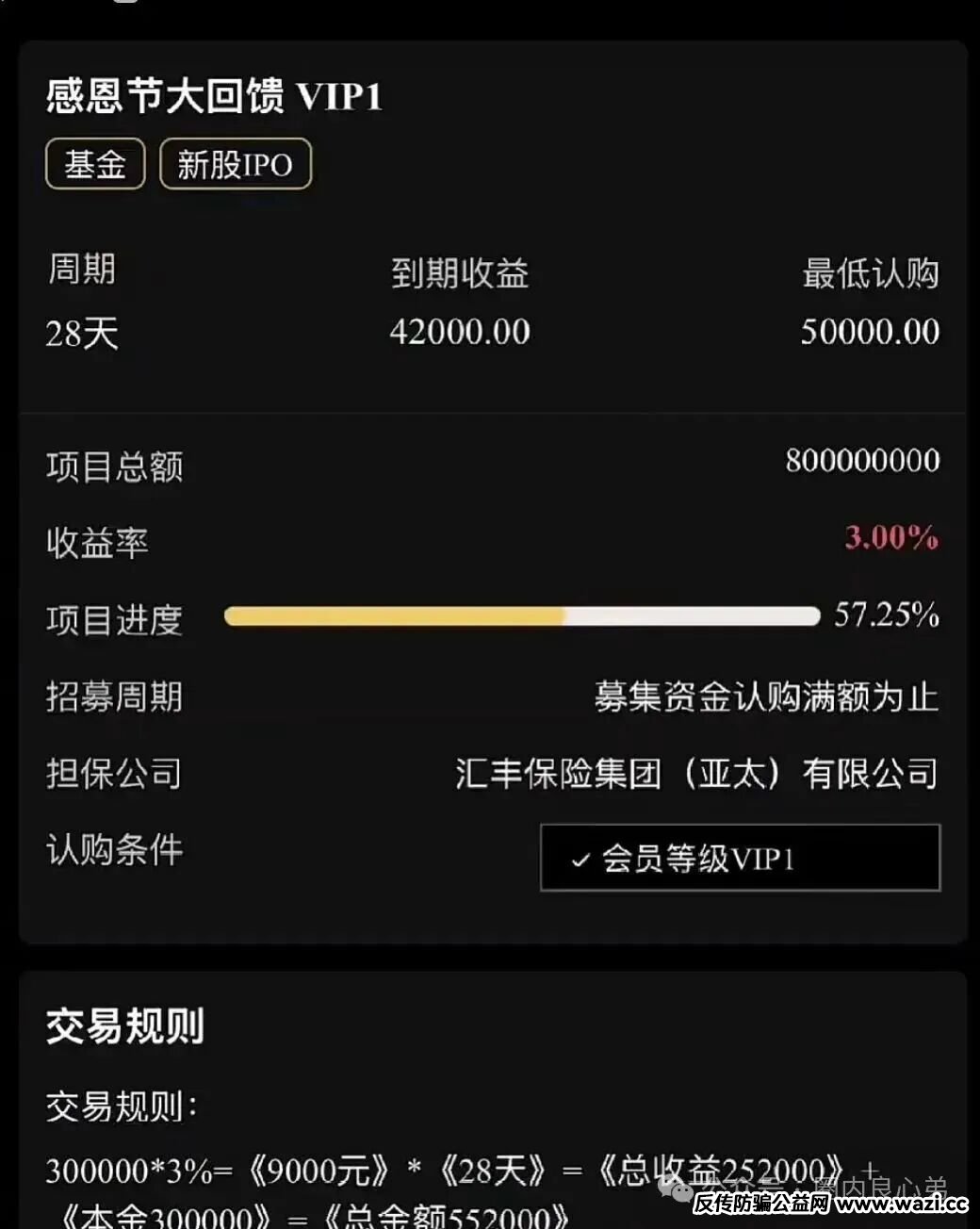 这是个打着慈善公益幌子的资金盘骗局,推出各种虚假的理财产品让参与者投资,每天利息收益高达在1%到3%,现在正规的一些基金理财产品一年的收益都不一定有3%,这些资金盘骗局一天就干到了1%收益,怎么可能的事情,明显都是假的!