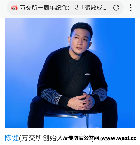 首先咱们看看这个万交所的创始人董事长陈健,由文案人员一手操办,目前可搜索出很多类似软文,利用信息差去编辑高大上内容,却忘了这个世界的网络是通畅的。